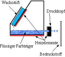 Bei Thermotransferdruckern dient eine Farbfolie als Farbträger. In dieser Folie sind die farbigen Partikel in eine Wachsschicht eingebettet. Diese Folie wird beim Drucken zwischen eine Heizleiste (quasi den Druckkopf) und dem Bedruckstoff geschoben und erhitzt. Durch die Erhitzung schmilzt die Wachsschicht und der Farbstoff wird auf den Bedruckstoff übertragen. Dort erkaltet die Schicht dann. Als Bedruckstoff ist Normalpapier geeignet, jedoch ergibt sich ein um so besseres Druckbild, je glatter die Oberfläche ist.